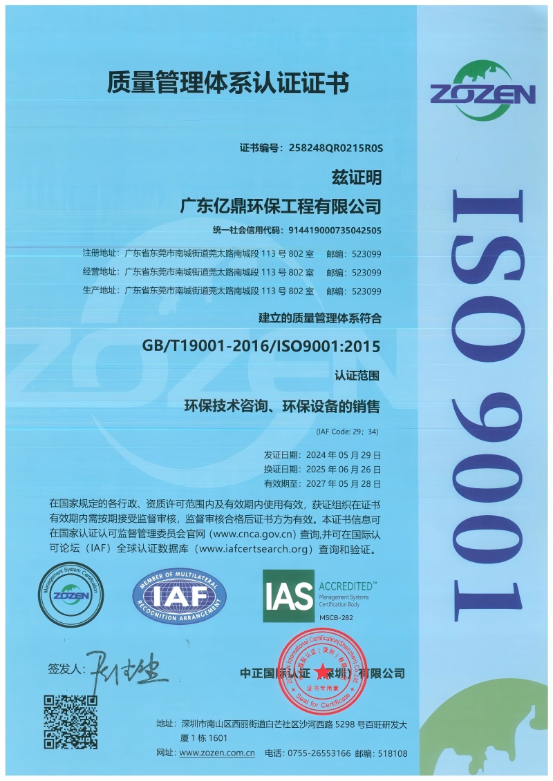 质量管理认证证书